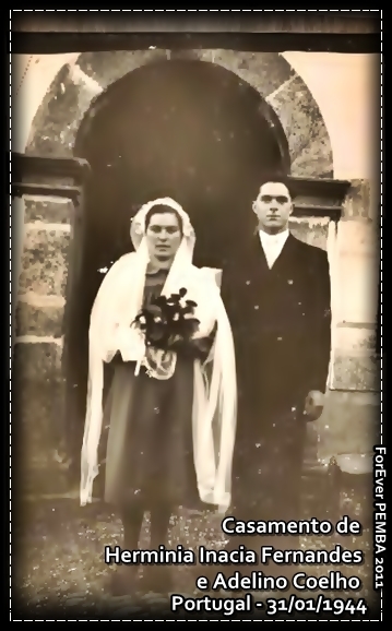 Casal Adelino Coelho (03/10/1916-28/03/2003) e Herminia Inacia Fernandes (09/07/1923), ambos naturais de Escalos do Meio, concelho de Pedrogão Grande - Portugal.