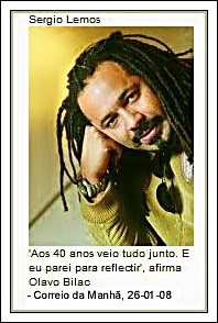 "Olavo Bilac nasceu em Porto Amélia (Pemba), Moçambique. Aos 8 anos chegou a Portugal, sem os pais. Com 21 começou a dar a sua voz aos Santos & Pecadores. Atingiu a fama de imediato mas num outro projecto, os Resistência." - Matéria de José Manuel Simões, Correio da Manhã - 26.01.08.