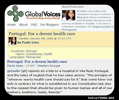 A jornalista Paula Góes da Global Voices OnLine, repercute de Londres o ForEver Pemba e o "sistema de saúde em Portugal-Vila Real" - Aqui !