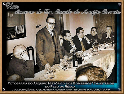 O Dr. Camilo de Araújo Correia foi um dos melhores bombeiros de escritório nos bombeiros da Régua. Por pouco tempo é certo, como ele o confessa, pelos muitos afazeres de médico anestesista. Mas exerceu essa função com grande paixão de bem servir. Como Presidente da Direcção conheceu e conviveu de perto com muitos bombeiros. Ao lado deles sorriu e deu muitas gargalhadas pelas divertidas peripécias de alguns, como as presenciou na vida do bombeiro Justino, que andará com ele pelos caminhos da Eternidade a inspirar-lhe mais deliciosas histórias, que nos cativem com seu sentido de ironia e de humor fino.